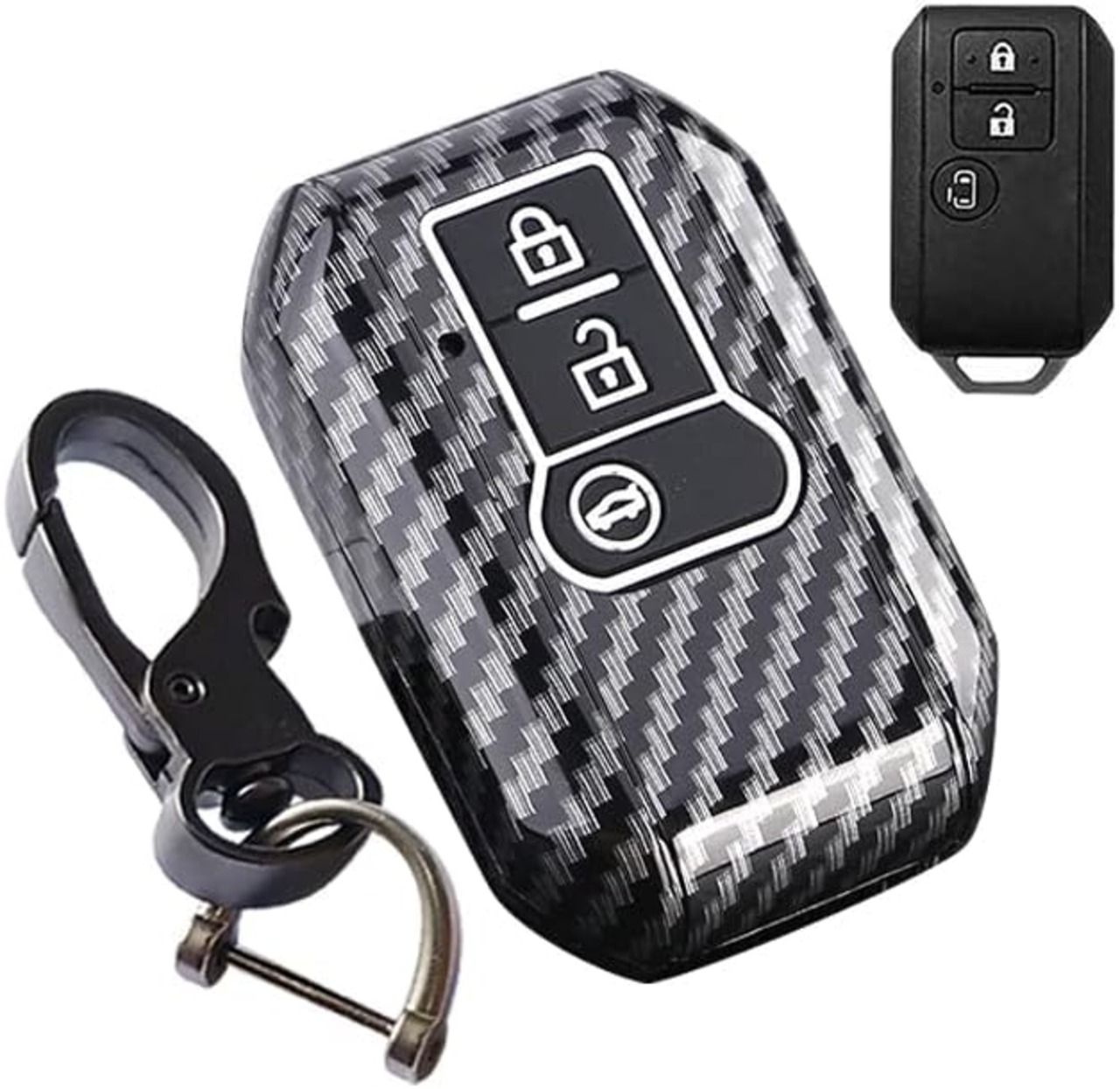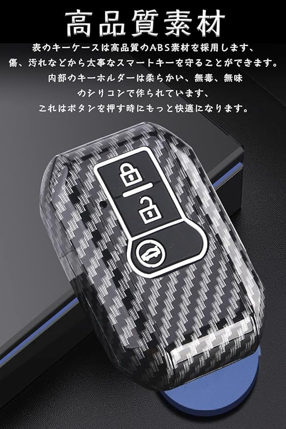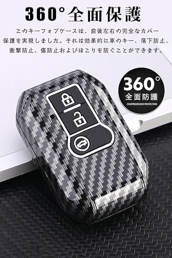 キーケーススズキ用 スマートキーケース キーカバー ABS プラスチック 3ボタン カーボン調 スズキ専用設計SUZUKI 新型ソリオ SOLIO 新型スペーシア ァッション 等に適用 キーホルダー