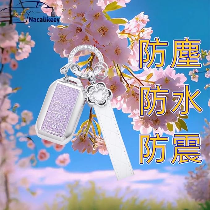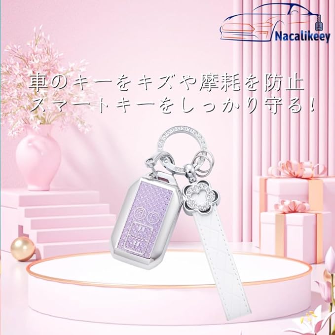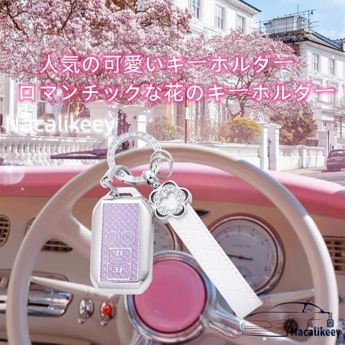 【Nacalikeey】梅の花 キーケース適合スズキの車種和桜の舞新型ソリオ SOLIO 新型ハスラーキーケース かわいい女の子可愛いキーケースカバー夢幻貝ガールキーホルダー(ネオンパープル)