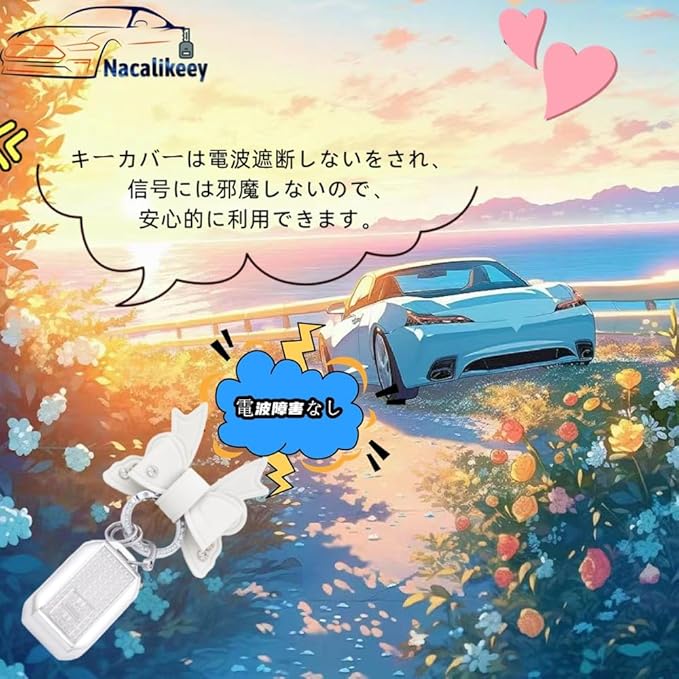 【遮断しない】キーカバーは電波遮断しないをされ、信号には邪魔しないので、安心的に利用できます。花の形、おしゃれでかわいい!