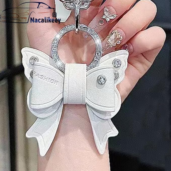 【Nacalikeey】キーケース適合スズキクロスビー 新型 ジムニー JB64W 新型 ジムニーシエラ B74W・ 新型ハスラー 新型ソリオ SOLIO/ソリオ バンディット 可愛の蝶々デザインキーケースきらめき キーカバー華やかなスタイルわいいキーケース キーホルダー 女性向け ギフト(2ボタン,ホワイト)