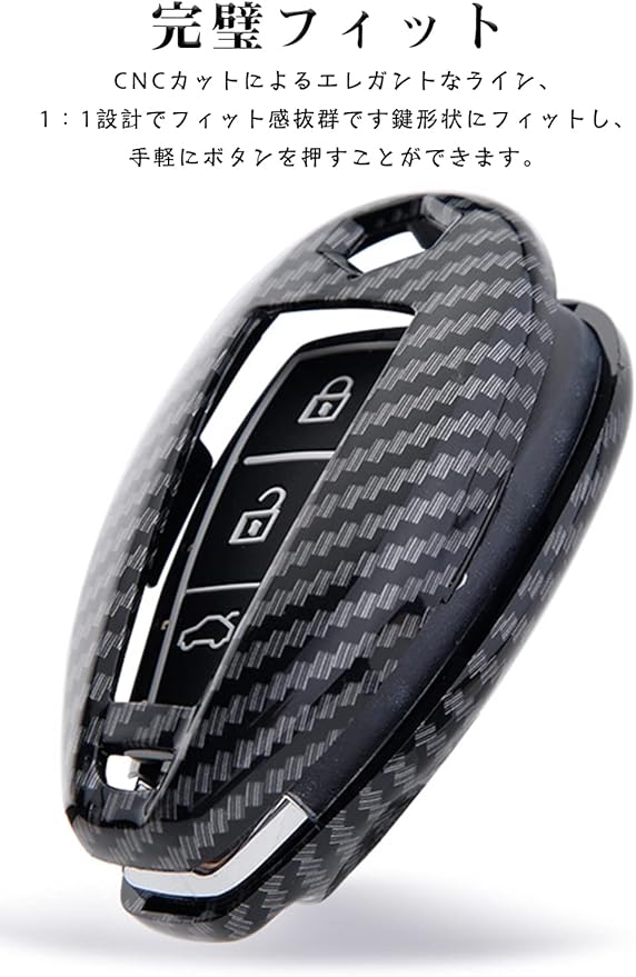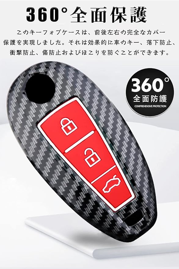 キーケーススズキ用 スマートキーケース キーカバー ABS プラスチック カーボン調 3ボタン スズキ専用設計SUZUKI SX-4 S-CROSS イグニス エスクード スイフト バレーノ等に適用 キーホルダー