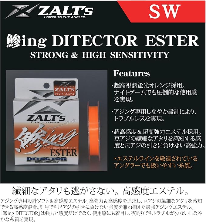ザルツ(Zalt's) アジング用 エステルライン DITECTOR 鯵ing ESTER (ディテクター アジング エステル) 蛍光オレンジ 200m