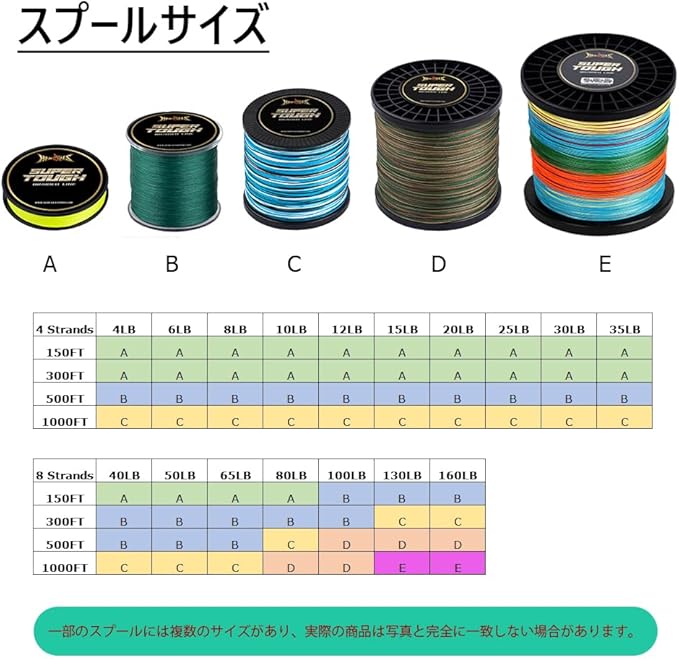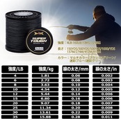 「サイズ」長さ:150yds、137m 号数:0.1号 最大強力:4lb、1.81kg 線の太さ:0.06mm、0.002in