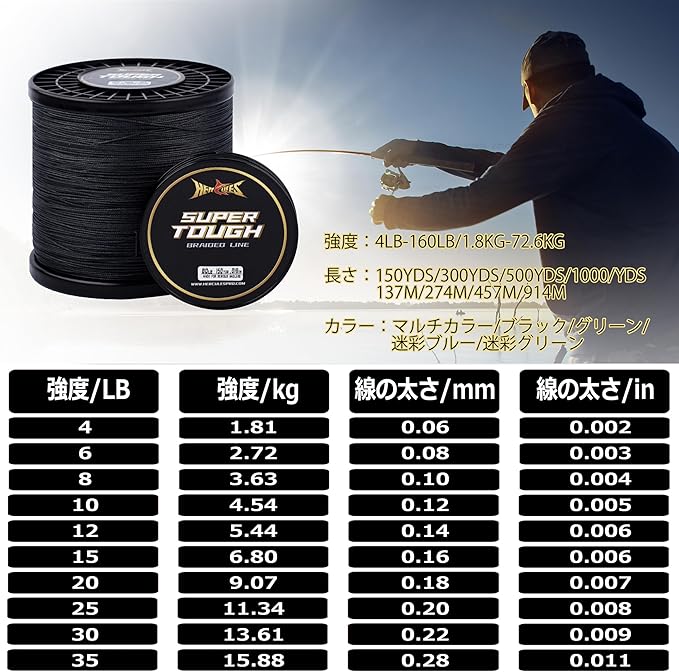 ヘラクレス(HERCULES) PEライン 釣り糸 スーパータフ 4編・8編 細かい糸 150m 300m 500m 1000m 0.1号 0.2号 0.4号 0.6号 0.8号 1号 1.2号 1.5号 2号 3号 4号 5号 7号 8号 12号 14号 16号