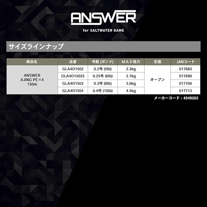 扱い易さを追求した絶妙な「ハリ」と「コシ」を持つ、アジング専用4ブレイド(4本撚) PEライン「アンサー アジングPE 4」!!