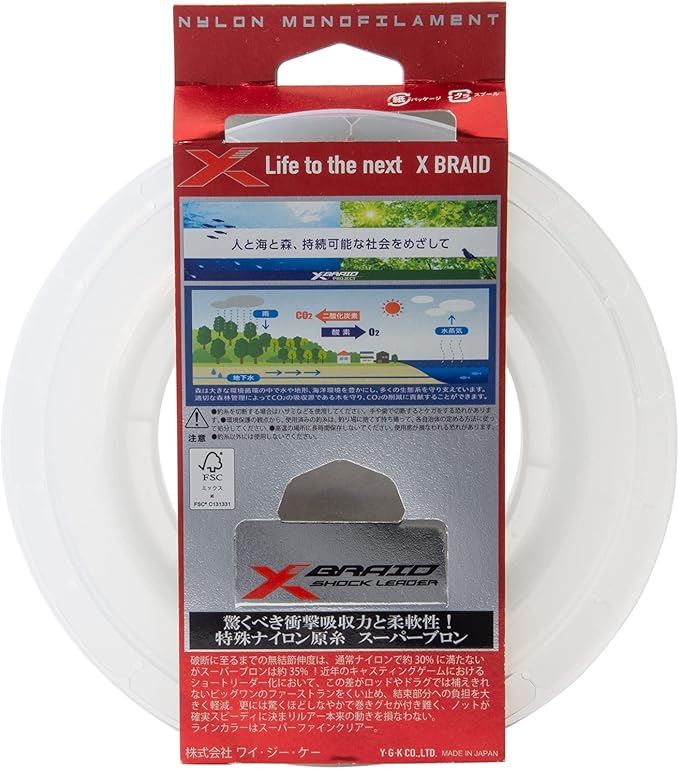 驚くべき衝撃吸収力と柔軟性! 特殊ナイロン原糸 スーパーブロン破断に至るまでの無結節伸度は、通常ナイロンで約30%に満たないですが、スーパーブロンは約35%! 近年のキャスティングゲームにおけるショートリーダー化において、この差がロッドやドラグでは補えきれないビッグワンのファーストランをくい止め、結束部分への負担を大きく軽減します。 更には驚くほどしなやかで巻きグセが付き難く、ノットが確実スピーディーに決まり、ルアー本来の動きを損ないません。 ラインカラーはスーパーファインクリアー。