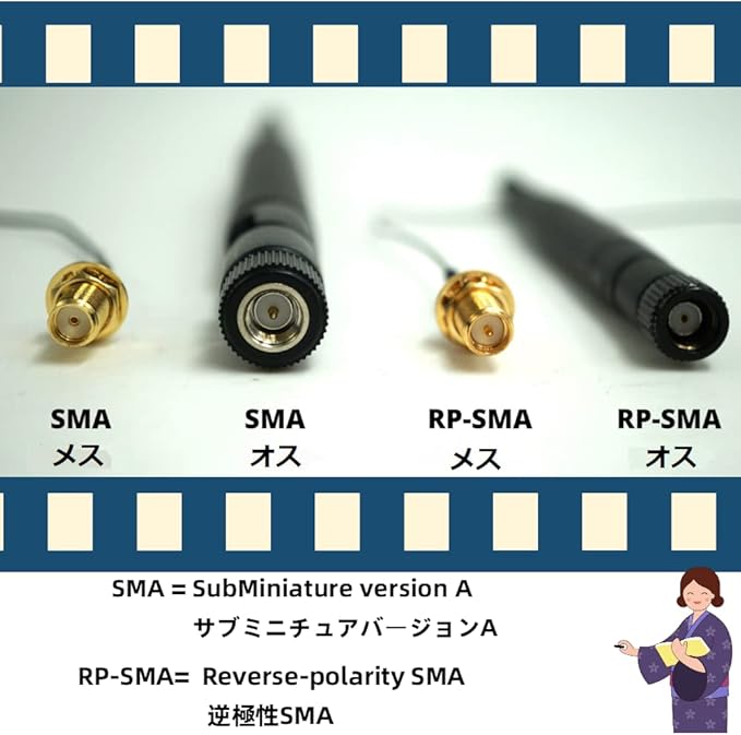 特徴:長さわずか5cmで、スペースを取りすぎなく、2.4GHz・5.8GHz周波数を持って、狭い場所や遮蔽物がある場合に適しています。安定した接続:防水性と耐久性を備えた絶縁デザイン、屋外でも安心して使用可能があります。金メッキコネクタなので、耐食性が良い、高温に耐えます。ネジ式なので、しっかりと固定でき抜け落ちることがありません.