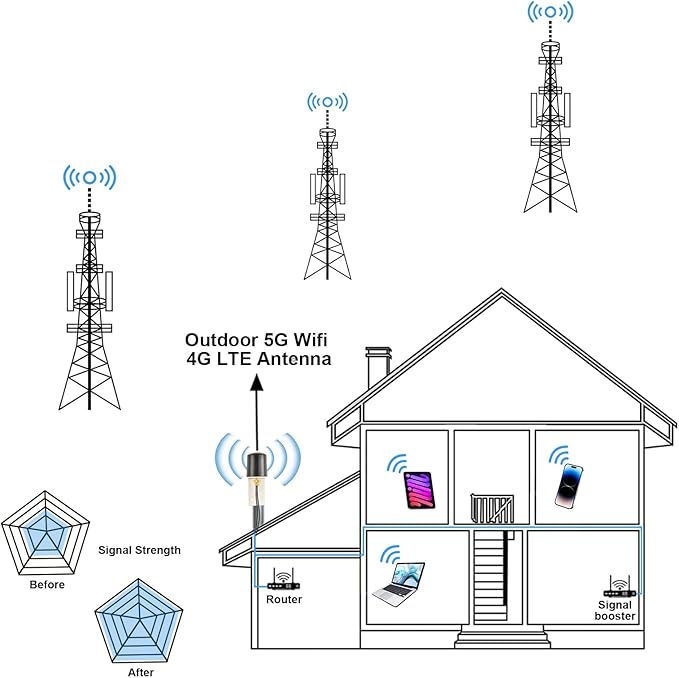 簡単設置と幅広い互換性。無指向性のデザイン、角度調整の手間は不要です!軽量で取付金具セットも付き、誰でもすぐに始められます。ベランダや屋根、キャンプ場など、どこでも手軽に設置可能で、通信ストレスから解放され、すぐに高速通信を体感します。