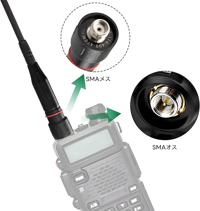 ✿SMAオス(ピンが出ているタイプ)のハンディ機にダイレクト接続できます。Kenwood-TK-255、TK-260、TK-290、TK-3107、Baofeng -UV-5R、UV-82、BF-888S、UV-B6, GT-3などに適します。