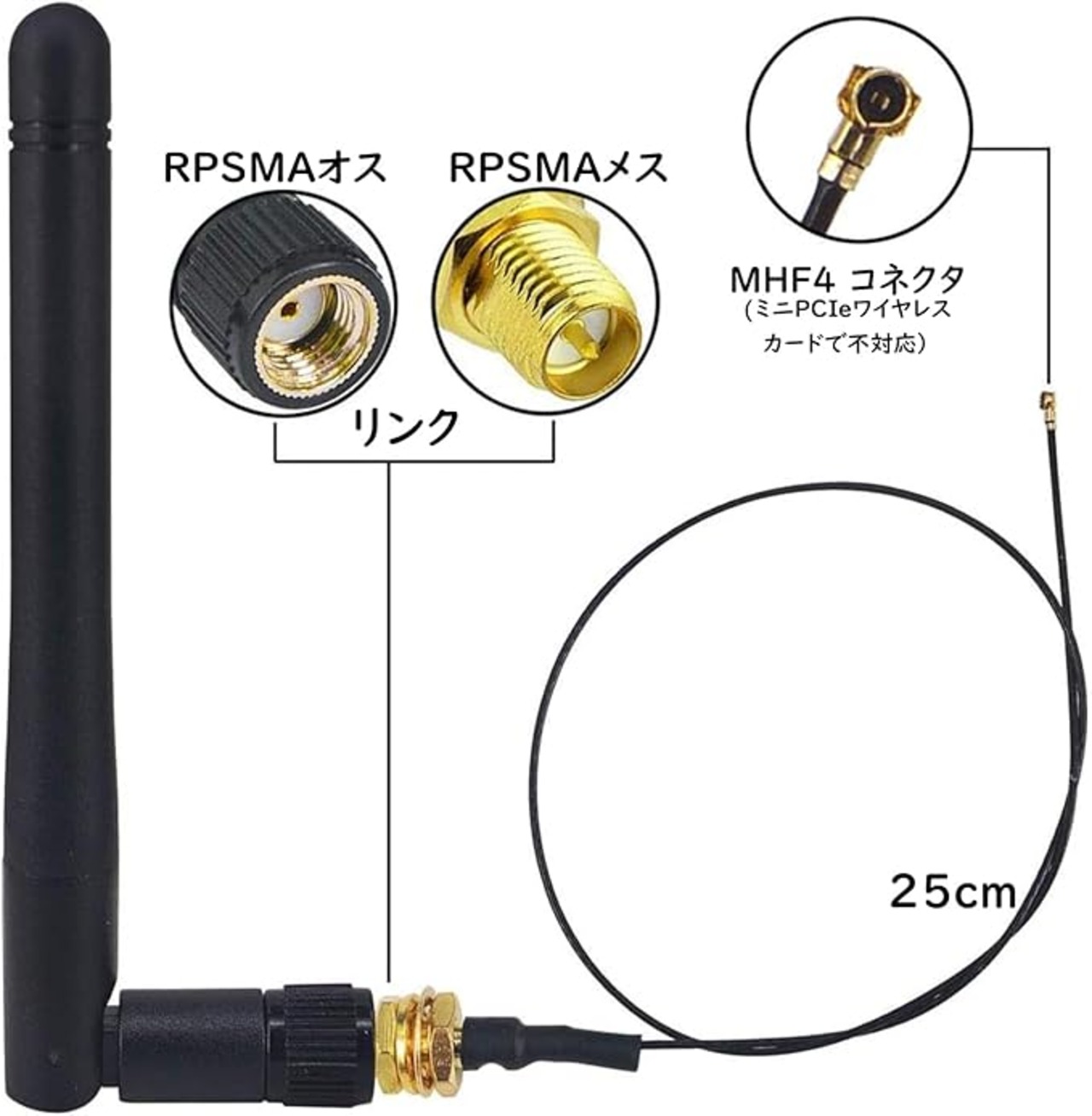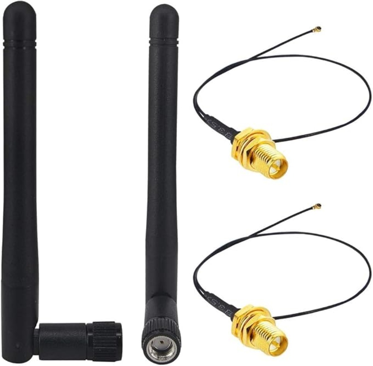 ✿パッケージ内容:RPSMAオス・WIFIアンテナ(2.4/5.8Ghz)*2個+RPSMAメス(ピン有り)ーMHF4コネクタ・0.81mm・ケーブル*2本