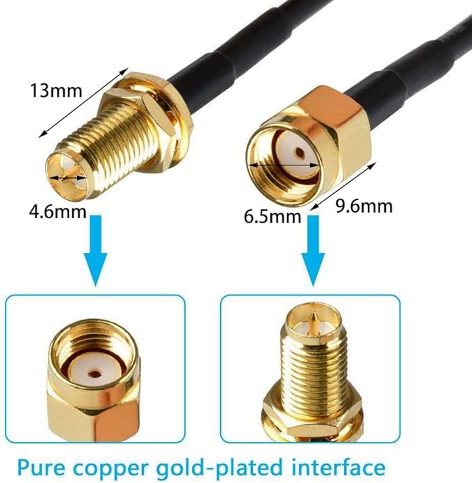 ★ 製品名: RP-SMAオス-PR-SMAメスケーブル; プラグのタイプ:RP-SMAメスへのオス; インピーダンス:50Ω。
