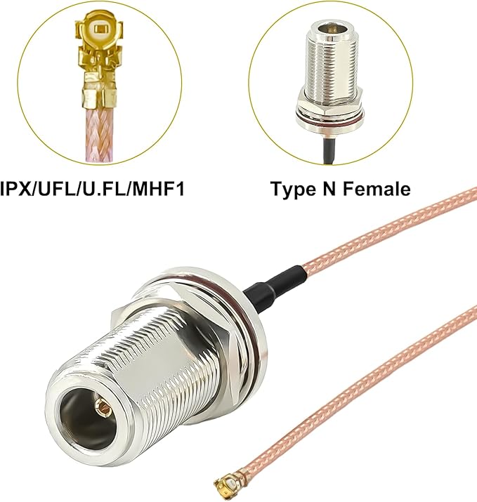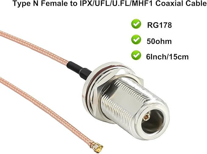 ケーブルタイプ:6インチ(15cm)RG178 N型メス - MHF1 UFL IPXピグテールケーブル