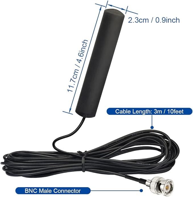 周波数範囲:20MHz~1300MHz。対応機種:公共無線機、アマチュア無線、双方向無線機、トランシーバー、携帯無線機。VSWR:< 2.0。インピーダンス:50Ω。特徴:車の窓に貼り付け可能な粘着式。ケーブル長:3m。アンテナコネクタ:BNCオスコネクタ。