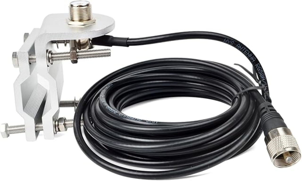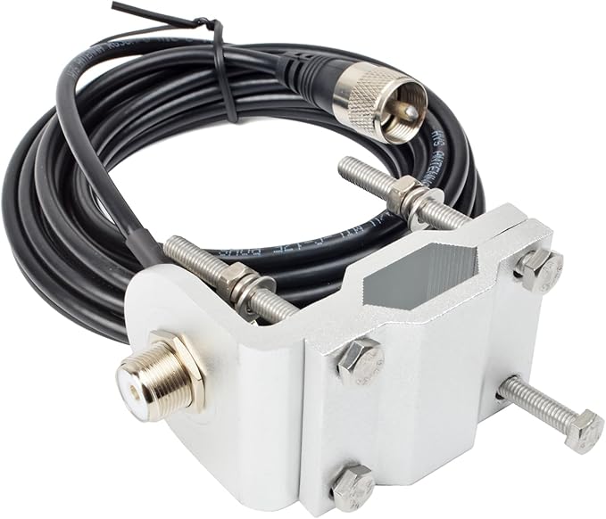 TWAYRDIO アルミ製 アンテナ取付金具 アンテナ基台 ステーブラケット MP-MJ型RG58同軸ケーブル付 アマチュア無線アンテナ固定用 ベランダ手すり用 ミラーパイプ用 車載用