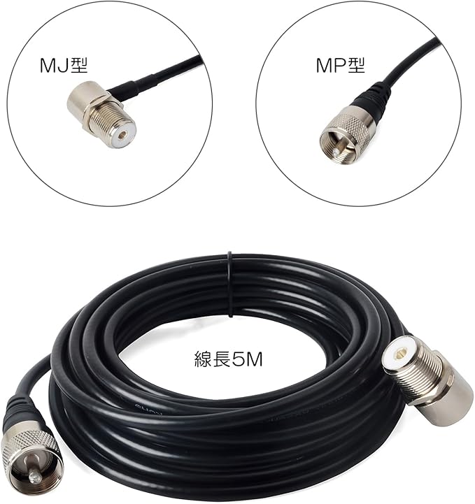 【RG58同軸ケーブル】 線長5M 一端MP型コネクタ、一端MJ型コネクタ