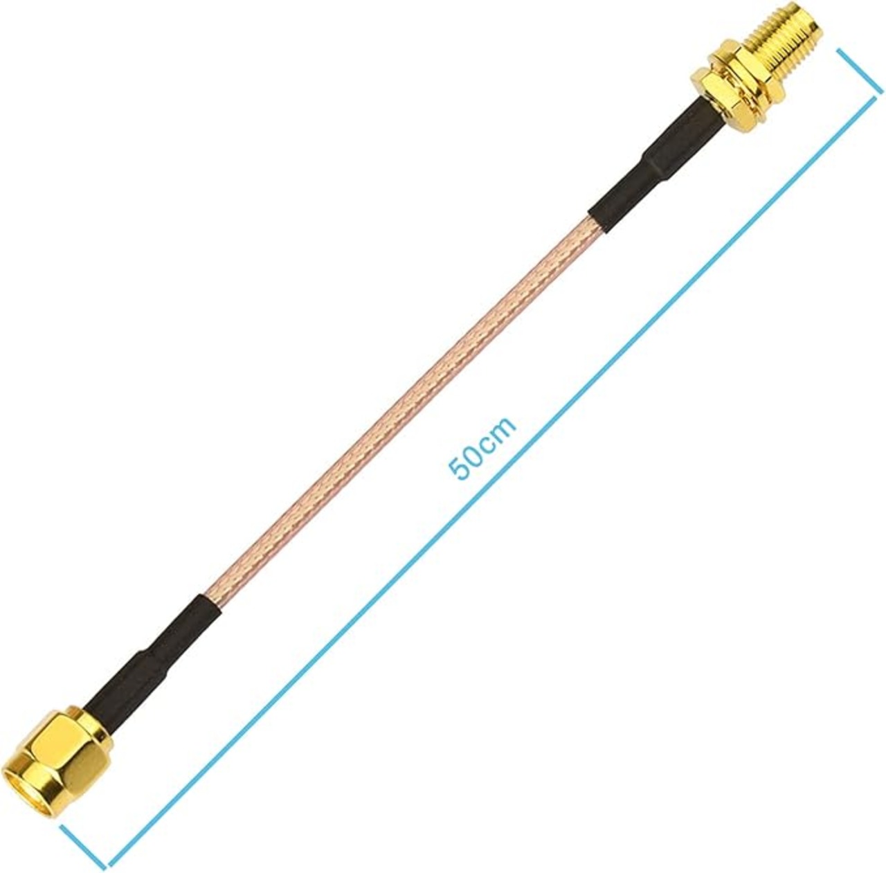 商品仕様:電線径:約2.5mm|ケーブル長さ:50CM| RPSMAメス - RPSMAオス