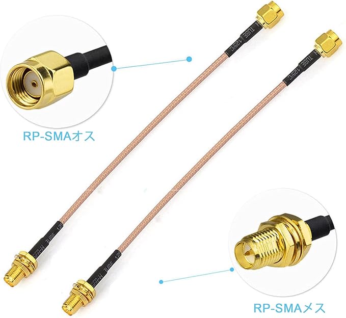 BINGFU RP-SMAアンテナケーブル RPSMA オス⇔メス 同軸ケーブル 延長ケーブル 低損失 50cm 2本入