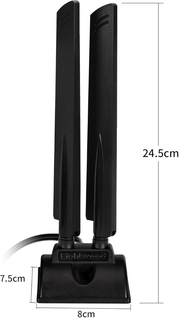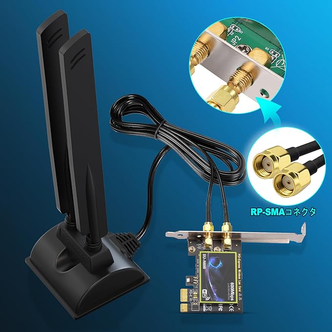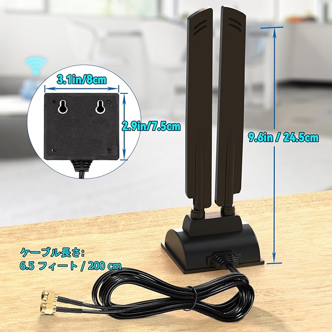 注2:このアンテナには、RP-SMAオスコネクタ(メスネジ、センターピンなし)が2つあり、RP-SMAメスコネクタポート(オスネジ、センターピンあり)と互換性があります。ご注文前に、お使いのコンピューターのWi-Fiカードまたはデバイスのコネクタタイプをご確認ください。