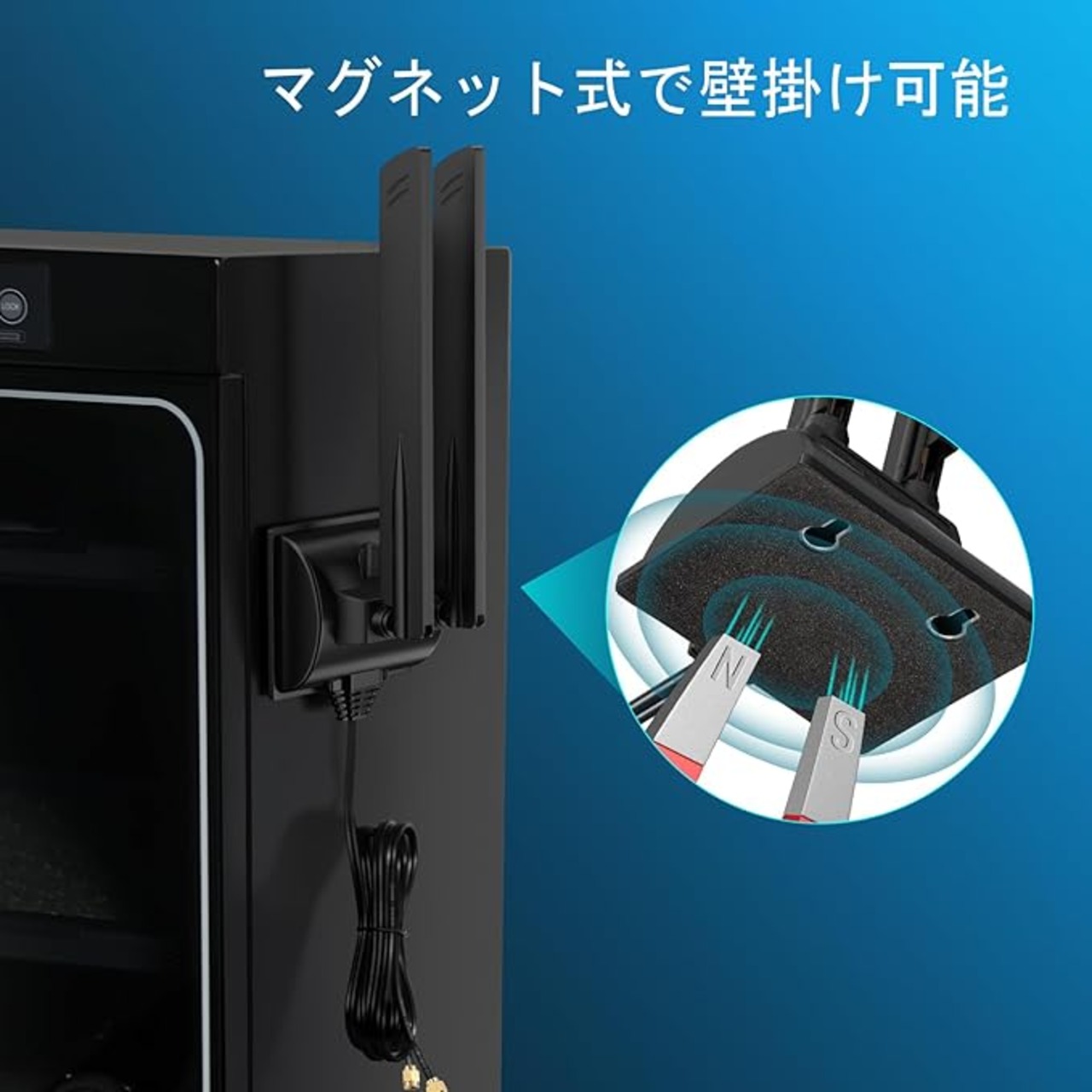 柔軟な設置:約1.8メートルのケーブルにより、最適な信号位置にアンテナを柔軟に設置できます。内蔵のマグネットベースは、あらゆるスチール面にしっかりと固定できるため、簡単に設置できます。