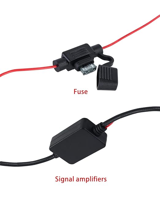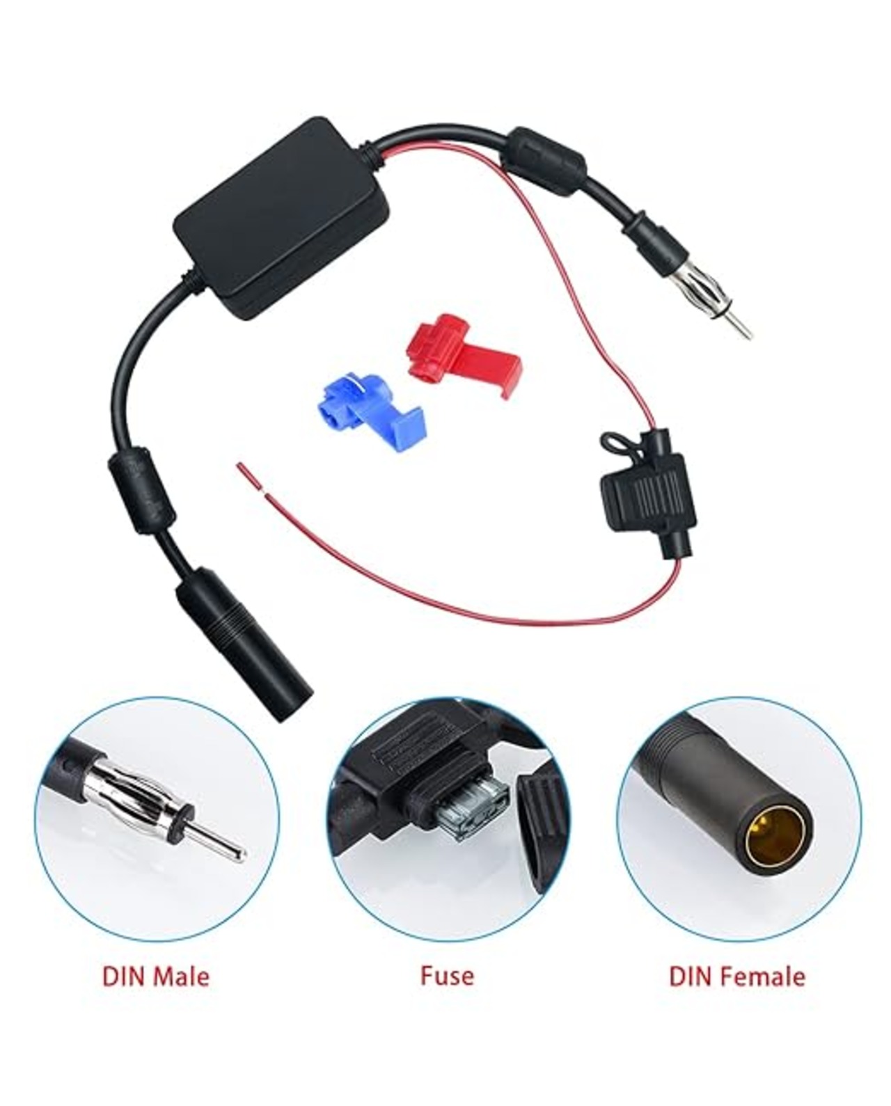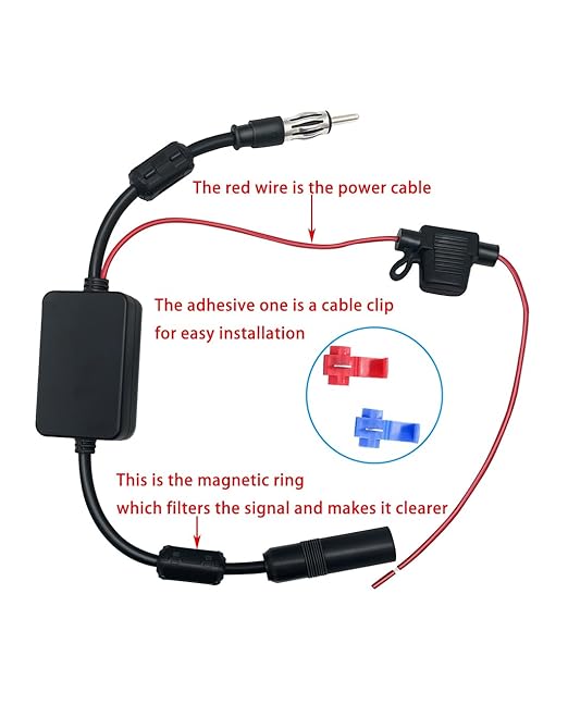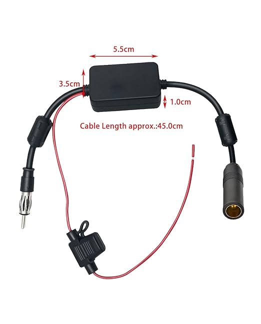 FM/AMカーアンテナ信号増幅器 DINメス-DINオスアダプター付 12V ユニバーサルラジオアンテナ増幅器 磁性リング付き オーディオステレオ デジタルカーラジオ用