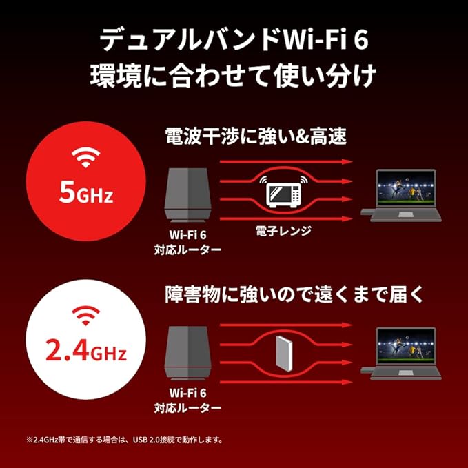 ●お使いのパソコンを最新規格「Wi-Fi 6(11ax)」にアップグレード●電波の利用効率を向上●卓上用USB延長ケーブルを付属