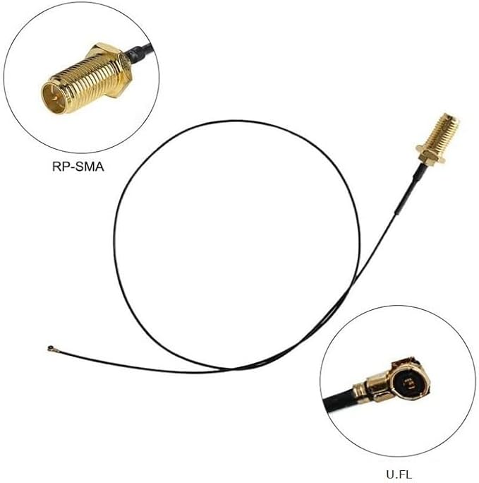 - 高ゲイン RP-SMA アンテナを NGFF/M.2 ワイヤレス カードに接続
