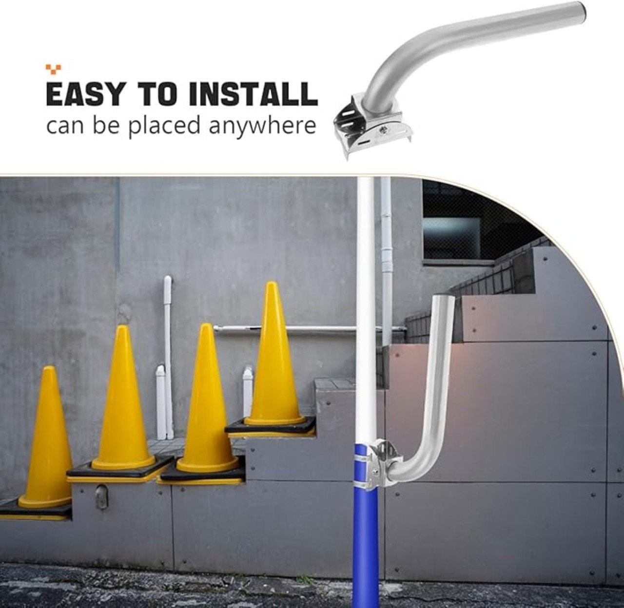 【多様な取付方法】 壁面取付やポール取付が可能で、様々な設置場所に対応します。