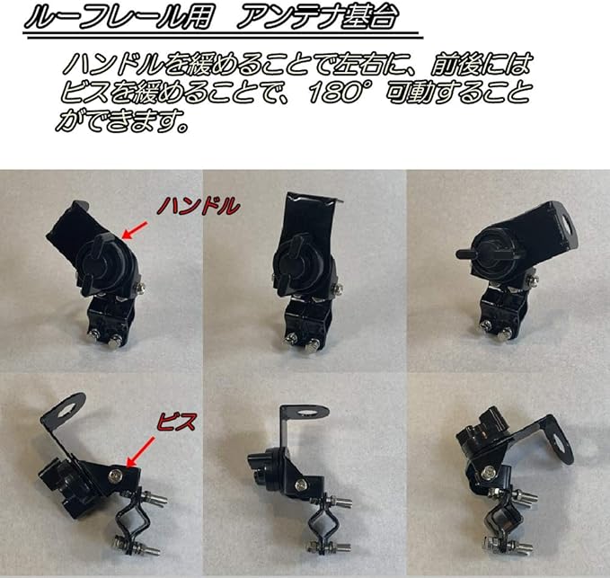 ◆ 基台はハンドルやビスにより、アンテナの取付け角度を自由に設定できます。