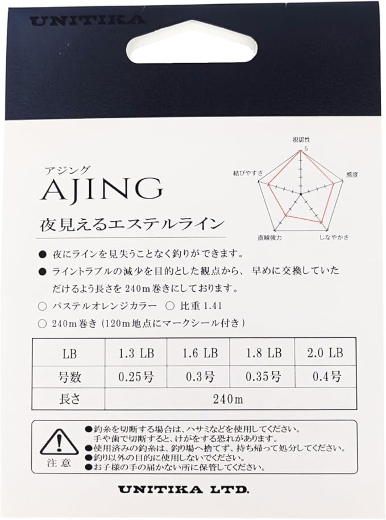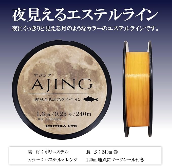 モデル:【夜見えるエステルライン】……夜釣りの中でも、くっきりと見やすい「パステルオレンジカラー」採用。アジングに最適なエステルライン!!