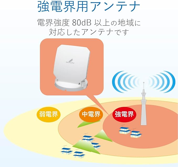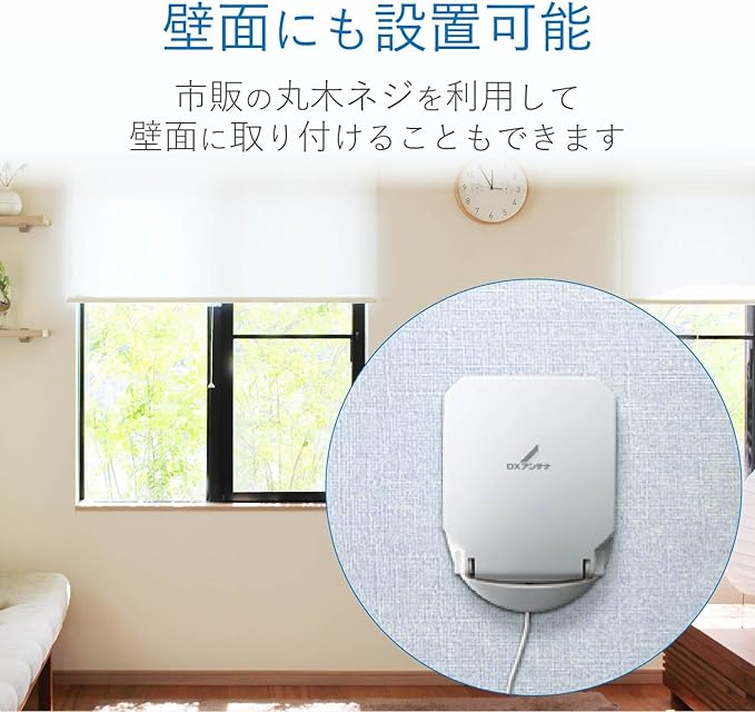●強電界地域でご利用いただける室内アンテナ●独自の傾き調整クリップで、アンテナ受信面を0~90度の範囲で無段階に調整、固定が可能。最適な受信感度に調整できます。●市販の丸木ネジを利用して壁面に取り付けることができます。