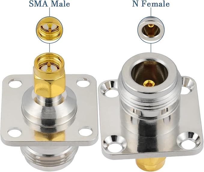 パッケージ:2個のN型メス-SMA型オス 4 穴フランジシャーシ取り付け型コネクタ|正味重量:65.9g