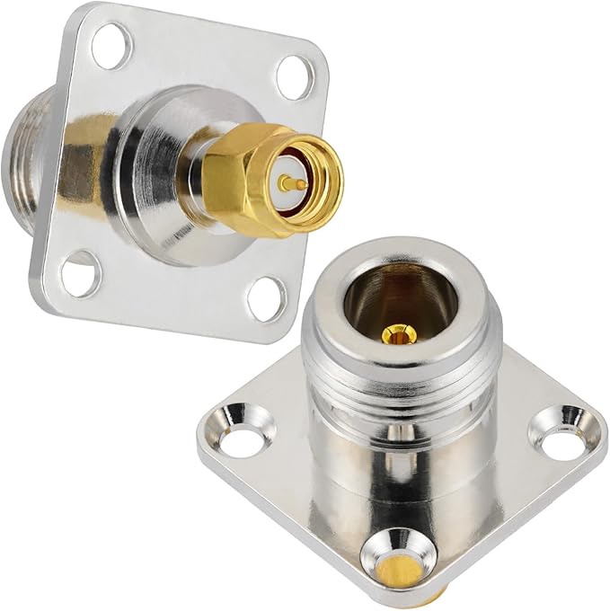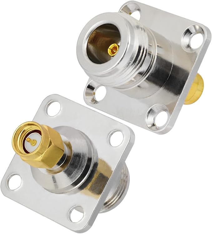 2個入りN型メス-SMA型オス 4 穴フランジパネル取り付け型コネクタ50オーム N型-SMA 4 穴フランジシャーシ取り付け型半田接続アダプター 無線アンテナ同軸ケーブル用