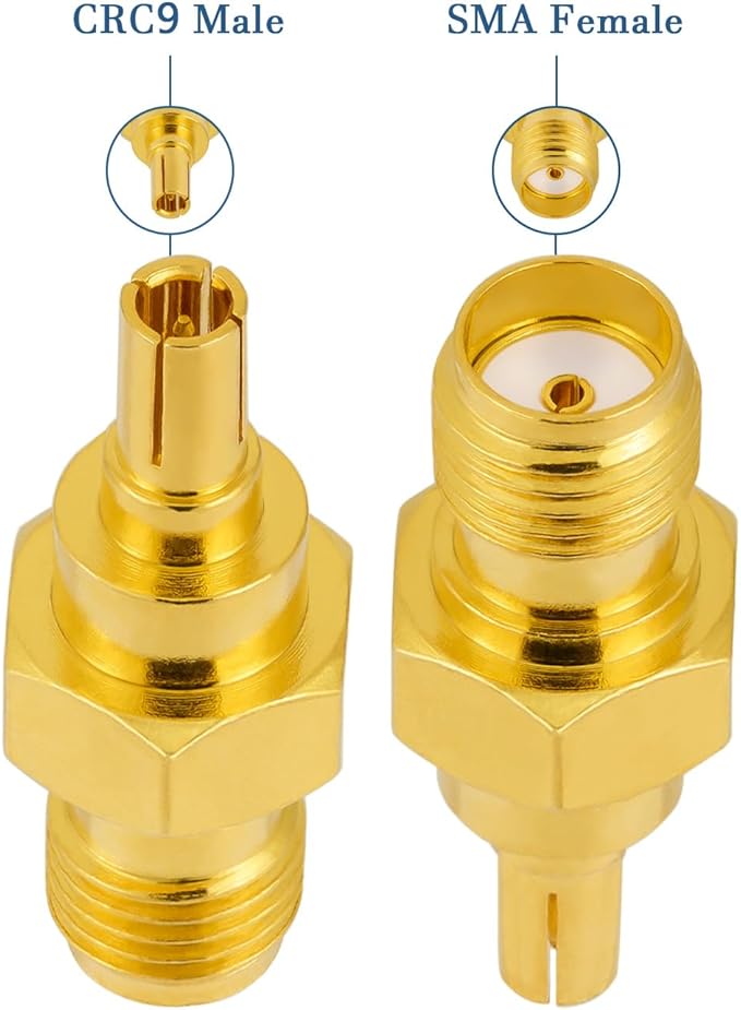 2個入りSMAメス-CRC9オスアンテナアダプター 50オーム SMA-CRC9 RF同軸アダプター WiFiアンテナ ネットワークカード 無線機器用