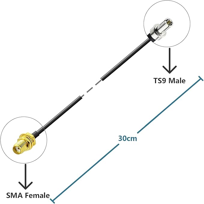 TS9オスストレートからSMAメス延長ケーブル RG174 30cm 11.8インチ 外部アンテナ用 ルーター6Gおよびモデム用