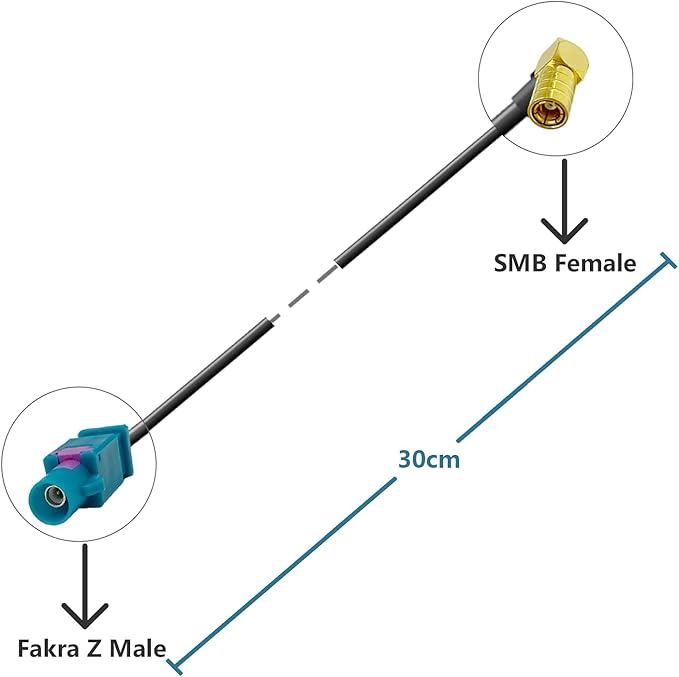 FAKRA - SMBアダプター対応車両用ラジオ受信実装用30cm延長カーアダプター