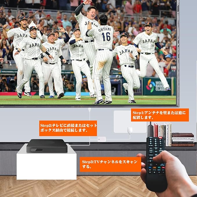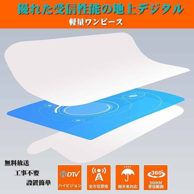 ✅【新発想設計|信号増幅機能内蔵】業界革新デザインの室内アンテナ。内蔵アンプ(ブースター)が受信信号を強化し、クリアな視聴をサポートします。VHF/UHF/デジタル放送(地デジ)の幅広い周波数帯域に対応しています。