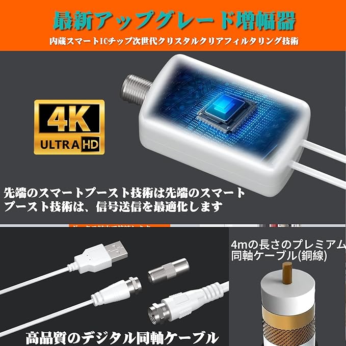 ✅【安心サポート|内容物明記】パッケージ内容:アンテナ本体 1、電源ケーブル 1、同軸ケーブル、変換コネクタ 1。設置や動作でご不明な点がございましたら、Amazon「注文履歴」からお気軽にお問い合わせください。迅速に対応いたします。