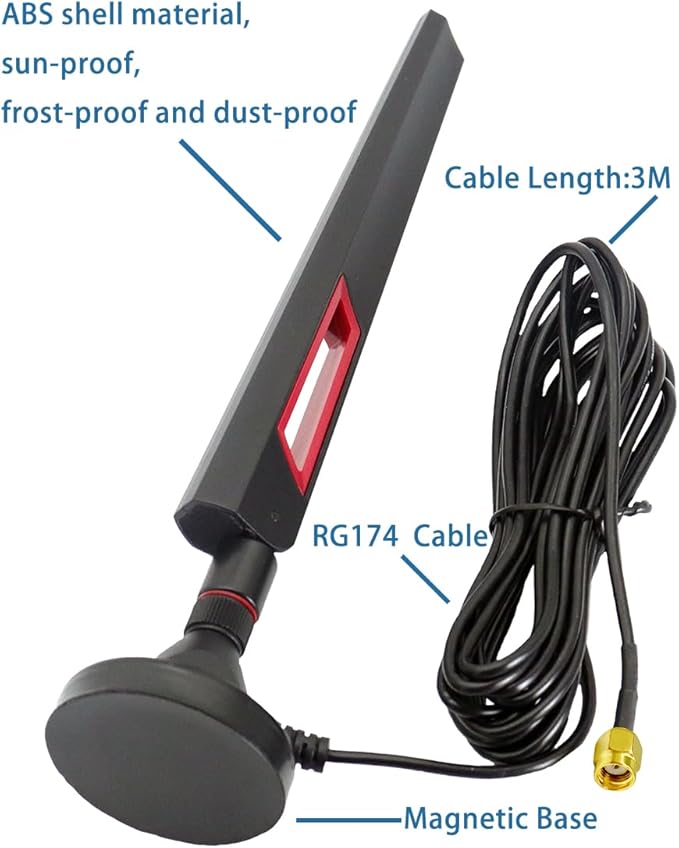 アンテナシェル素材:ABS 素材(日焼け止め、耐寒、防塵対応)|ケーブル種別:RG174 ケーブル|ケーブル長さ:3M