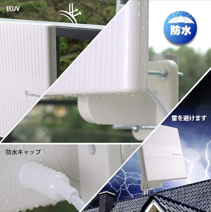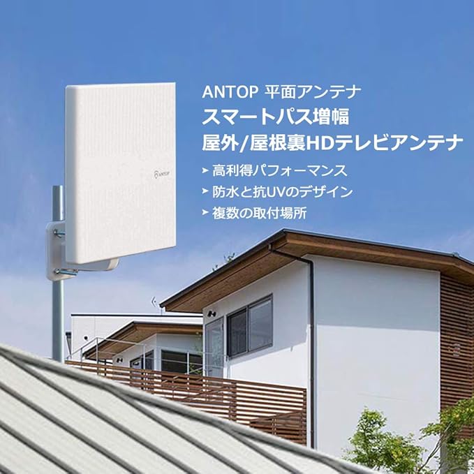 ANTOP 地デジアンテナ テレビアンテナ 室外 uhfアンテナ 地上デジタル放送アンテナ TVアンテナ 平面アンテナ 360 全方位受信 88KM受信範囲 軽量 取付カンタン 防水 抗UV 高耐久 AT-JP413