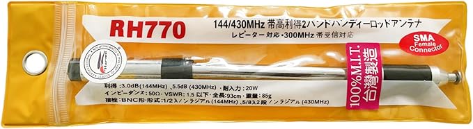 RH770 伸縮式 アンテナ SMA-メス 高利得 144/430MHz(U/V) 通信距離向上 TK-3100 TK-360 TK-370 TK-372 UV-5R F8HP 888S UV-82 KG-689 KG-669トランシーバー用