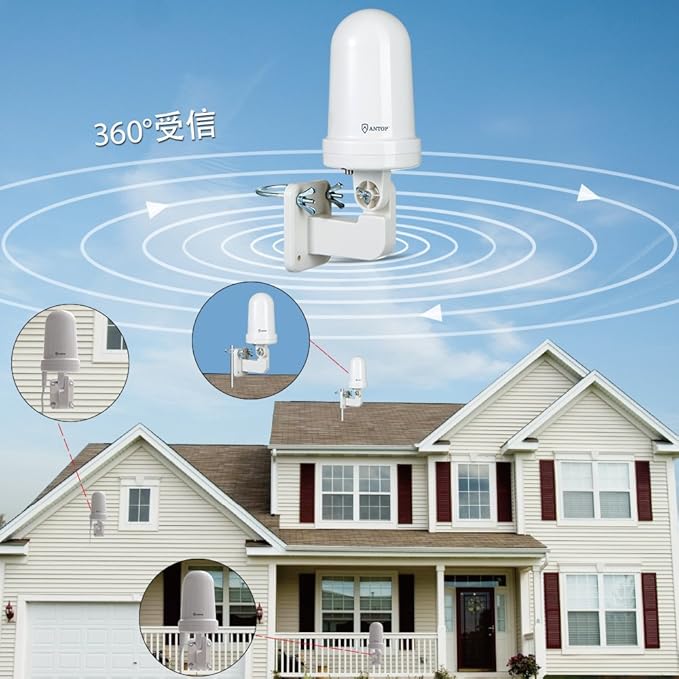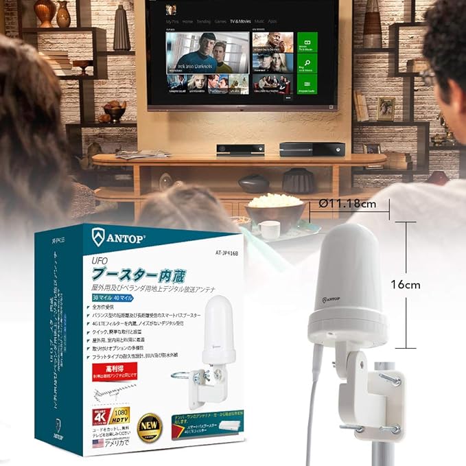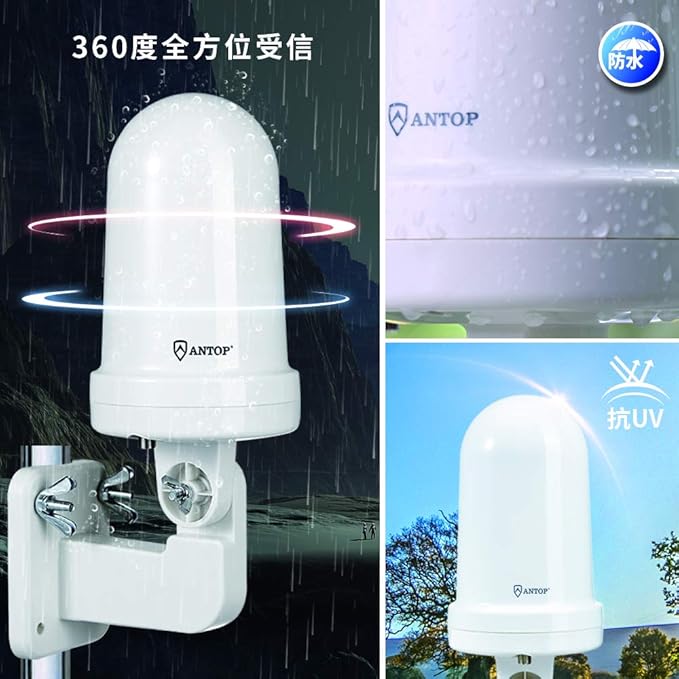 ANTOP 地上デジタルアンテナ 室外 HD テレビ 地デジ アンテナ TVアンテナ UFOアンテナ UHF対応 スマートパス増幅 360度全方位受信 5M同軸ケーブル付き 防水 抗UV 屋根裏用/RV用 設置簡単 AT-JP416B