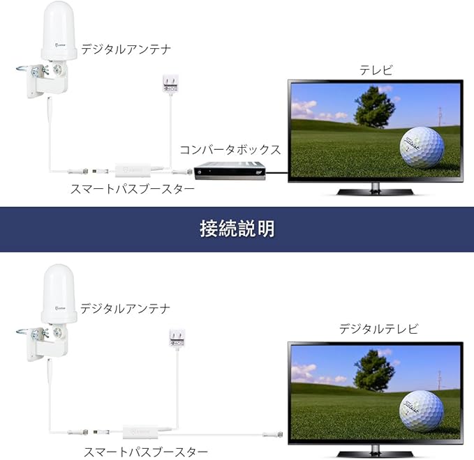 C.デザインアンテナ 風の抵抗を軽減し、悪天候の日でも良好な感度を維持します。ANTOP独自の技術により、簡単に接続でき、短距離と長距離の受信バランスを最適化します。