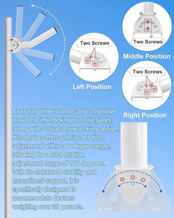 安定性の向上: ユニバーサル無線ブリッジマウントブラケットは、滑り止めギアと二重ネジロック設計を特徴としており、30LB以上の機器に対する優れた安定性とサポートを提供します。この頑丈な設計は、信号受信と接続性を最適化し、安全で長期間のパフォーマンスを確保します。