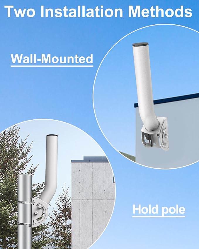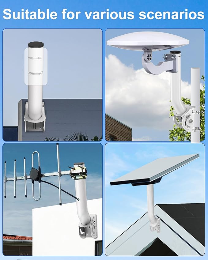 複数の機器をサポート: この無線ブリッジマウントは、テレビアンテナ、イーサネットブリッジ、ネットワークエクステンダー、Starlink Mini Dish、Wi-Fiルーター、気象ステーション、風向計、気象機器、屋外アクセスポイントなど、さまざまな屋外機器に適しています。シームレスな統合のために様々な機器を収容できます。