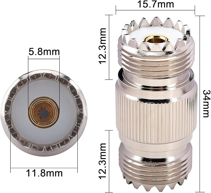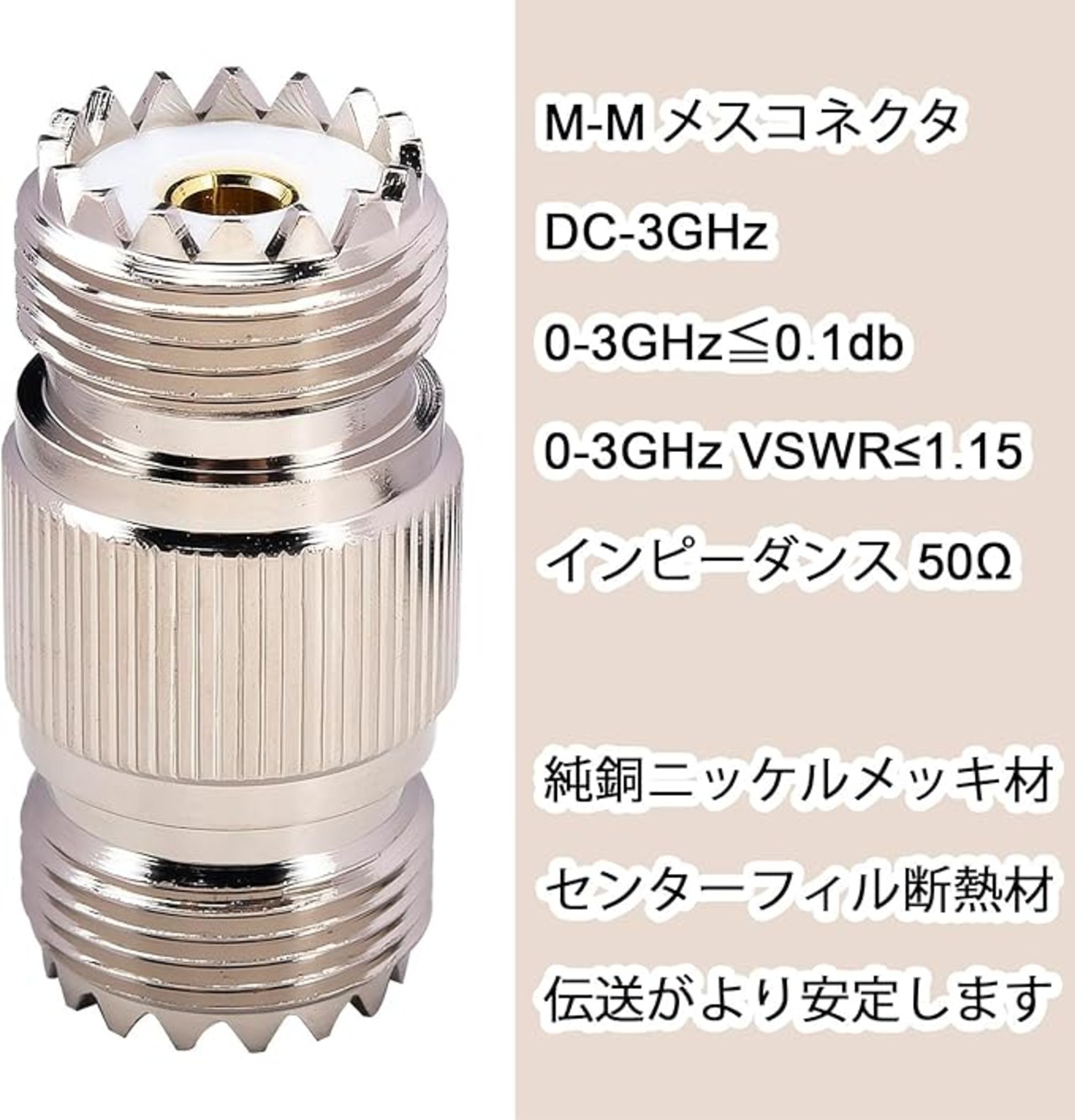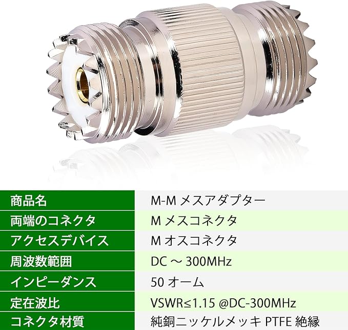 両端にMメスコネクタ。インピーダンス50Ω、周波数DC-300MHz、センタースルーホール固体絶縁、UHFメスSO239コネクタ、シリーズ間M-MコネクタRF同軸変換コネクタ
