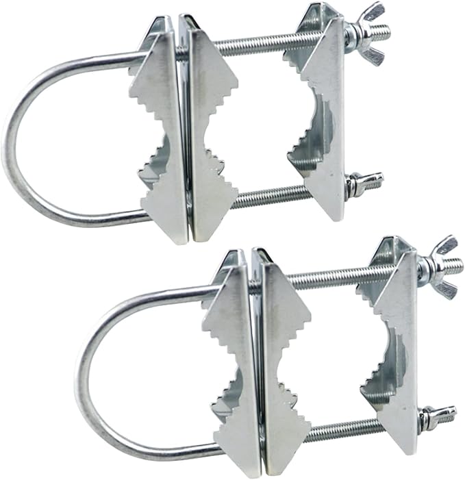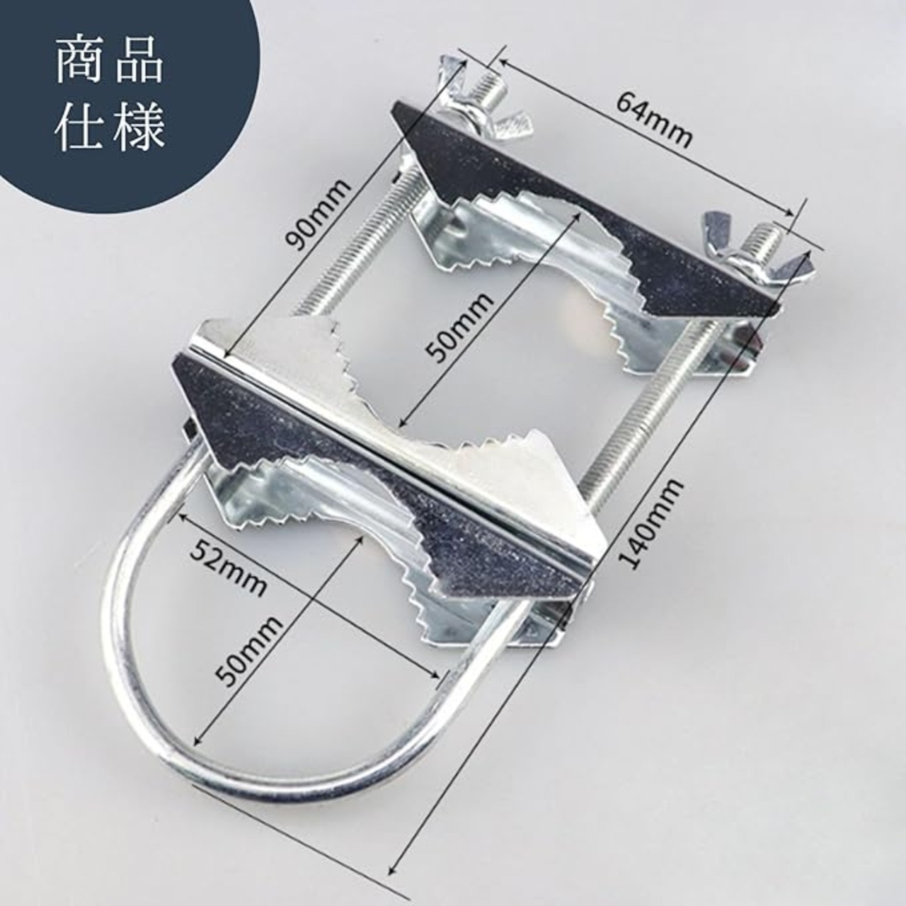 アンテナマスト クランプ パイプ固定金具 ベランダ シルバー 鉄製 2個セット