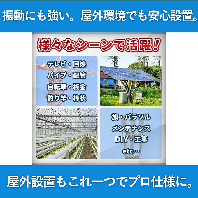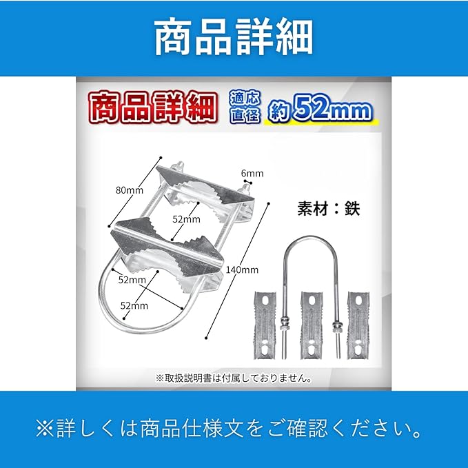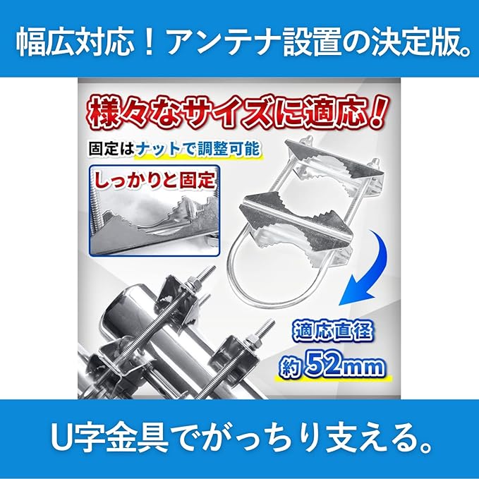・**U字型金具**:U字型の金具により、アンテナの取り付けが簡単で、設置時にしっかりと安定します。