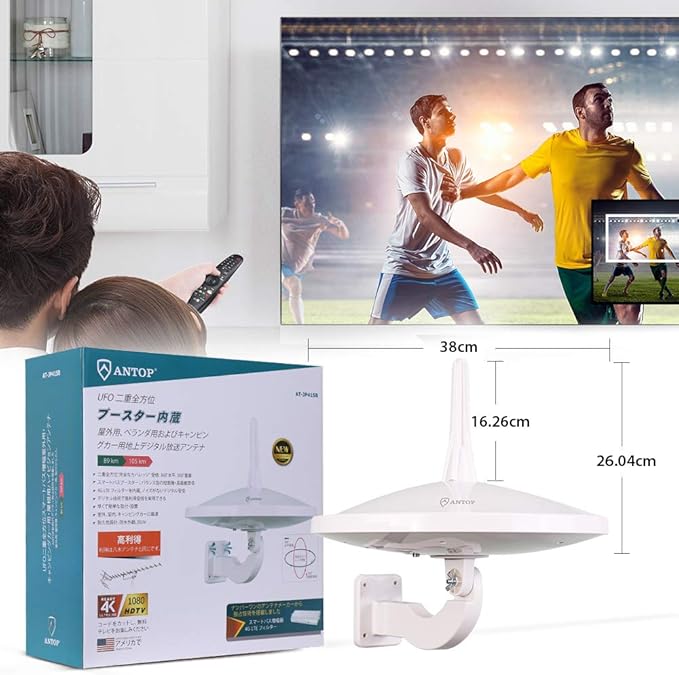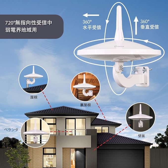 ❥【720 デジタル全方位受信】このantop地デジアンテナは360 水平+360 垂直の二重全方位受信を提供しております。また、105㎞以内で全方位受信できます。無線放送は環境や地形に影響をされやすい為、あらゆる条件下での受信は保証できないことをご了承ください。