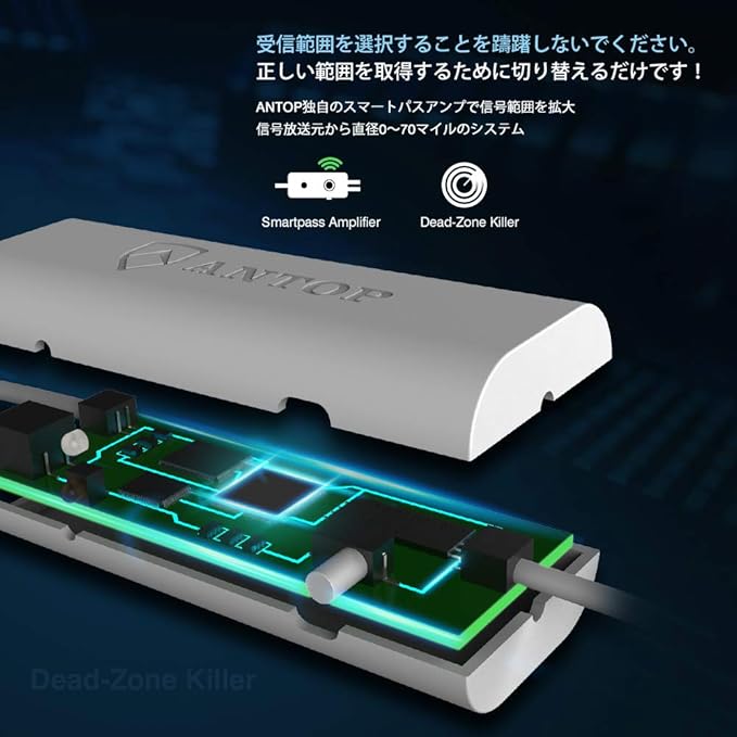 ❥【知能増幅器・優れた受信】新設計の利得は以前の八木アンテナと同じです。ANTOP高利得のアンテナは、知能ブースターシステムの独占技術を搭載して弱電界地域及び強電界地域の受信ができます。内蔵4GLTEフィルターは雑音を抑制し、安定する受信を確保できます。