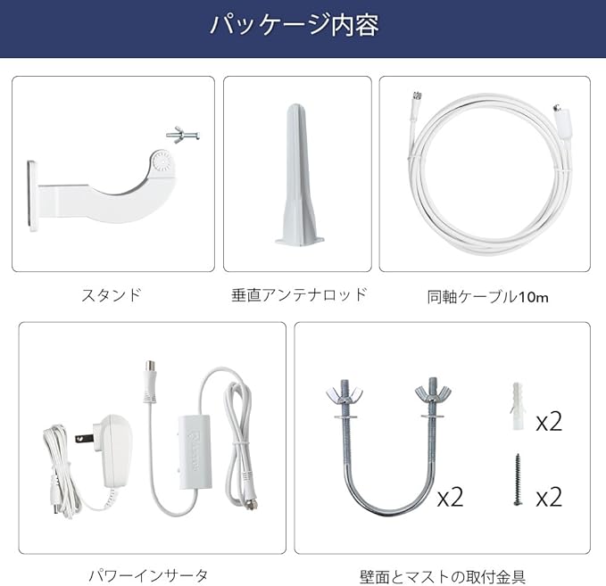 ANTOP 地デジアンテナ 室外テレビアンテナ UHF対応 地上デジタル放送用 HD TVアンテナ ブースター内蔵 720 全方位受信 105Km受信範囲 10m同軸ケーブル付き 設置簡単 中・弱電界用 ホワイト AT-JP415B